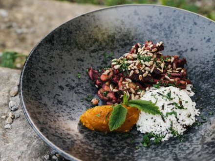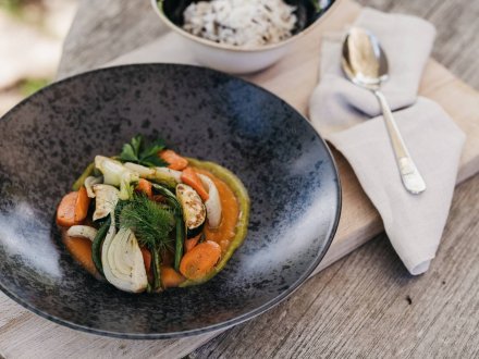 In der Küche des Naturhotel Chesa Valisa wird alles frisch aus 100% Bioprodukten zubereitet; sogar das Mehl wird selbst gemahlen, um damit fast täglich frisches Brot zu backen. Convenience-Produkte und Mikrowelle kommen nicht zum Einsatz. Und wer Allergien und Nahrungsmittelunverträglichkeiten hat, stößt im Naturhotel nicht auf verständnislose Blicke. Küchenchef Dennis Gasper kümmert sich bei speziellen Wünschen persönlich um die Zusammenstellung eines entsprechenden Speiseplans. Wenn morgens der Kaffeeduft von fair gehandeltem Bio-Kaffee im Speisraum liegt, erwartet die Gäste ein großes Frühstücksbüffet nach guter österreichischer Gastgebertradition – vom Frischkornbrei bis zur Gemüse & Obststation über eine eigene Ayurveda Ecke mit warmen Kompotts ist dort alles zu finden. Mittags gibt es eine leichte Jause mit Salat- und Rohkostbuffet, Suppen und kleinen warmen Gerichten sowie Strudel und Kuchen von der hauseigenen Kuchenfee. Vegan, ayurvedisch und mit österreichischen Klassikern, so beschreibt Magdalena Kessler die Küche des abendlichen 5-Gang-Wahlmenüs; nicht zu vergessen der „Grüne Tag“, jeden Donnerstag werden weder Fleisch noch Fisch serviert.