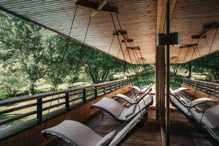 50 Zimmer, 2.000 m² AlpinSPA und 20.000 m² freies Umland – die behagliche Atmosphäre ist in jedem Winkel des Naturhotels spürbar. Beim Frühstück im Wintergarten genießen Sie den Blick über das Kleinwalsertal in Richtung Oberstdorf; und wenn Sie nach dem Skifahren oder einer Wanderung in der frühen Dämmerung nach Hause kommen, sehen Sie schon von weitem die gedeckten Tische im warmen, heimeligen Licht. Wer will, kann in der Sauna und im ganzjährig beheizten Quellwasserpool, den Blick auf die ins Abendrot gehüllten Bergketten genießen. Ausblick gibt es anschließend auch in der Sauna, die nicht ohne Grund „Panoramasauna“ heißt; und wer will, kann nach dem Schwitzen im Ruheraum oder dem breiten Sonnenbalkon auf Schwebeliegen den Blick durch die Natur schweifen lassen. Soledampfbad, In- & Outdoor Kneippbecken und Infrarotkabinen runden das große Angebot optimal ab.