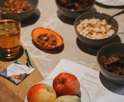 - täglich basische Vollverpflegung (gemeinsame Essenszeiten: Frühstück 9 Uhr, Mittagessen 12.30 Uhr, Abendessen 17.45 Uhr) & Teebüfett