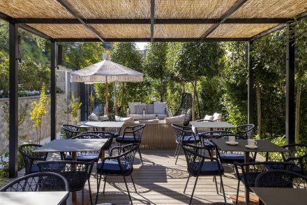 Das Hotel verfügt außerdem über einen ruhigen Innengarten mit Loungebereichen und einer Pergola, ideal für entspannte Momente oder Mahlzeiten im Freien.