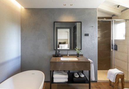 The hotel features six unique suites, each designed with its own character and crafted with high-quality natural materials: brushed oak floors, fine marble bathrooms, bespoke furniture and linen, cotton or jute fabrics.
