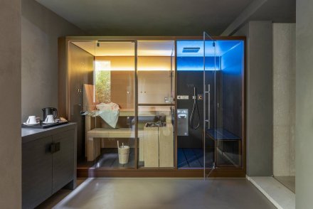 Guests can enjoy a Private Spa in marble with relaxation areas and wellness paths, as well as a design-forward NOHrD gym entirely made of wood and free from electric components.