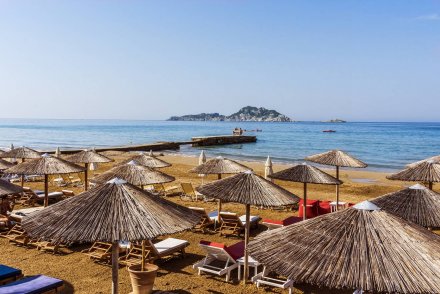 The OURANOS CLUB is not a closed holiday resort. The flats and bungalows are rented from several Greek owners. Guests stay in different houses, spread out over a maximum walking distance of 10 minutes. However, most are located right next to the restaurant and group room. The furnishings are simple and functional, with a shower, toilet, balcony or terrace, refrigerator and, in some cases, a small kitchen. All rooms face the sea and offer either an unobstructed or partially obstructed sea view. Two long sandy beaches are about a 10-15 minute walk away.
